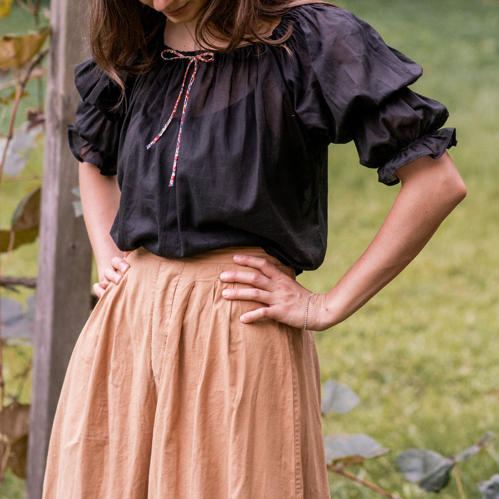 I have designed her with sweet curved neckline with a bow to cinch it in to your desired fit. I wanted a blouse long enough that I could tuck her in when I wanted to, but didn’t feel the need to all the time. The Eve portrays the romantic “puffed sleeves” that Anne of Green Gables envied so much, understandably, as does any girl in her right mind!